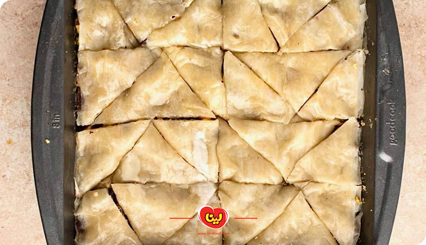 مرحله ششم؛ پخت باقلوا با خمیر هزارلا
