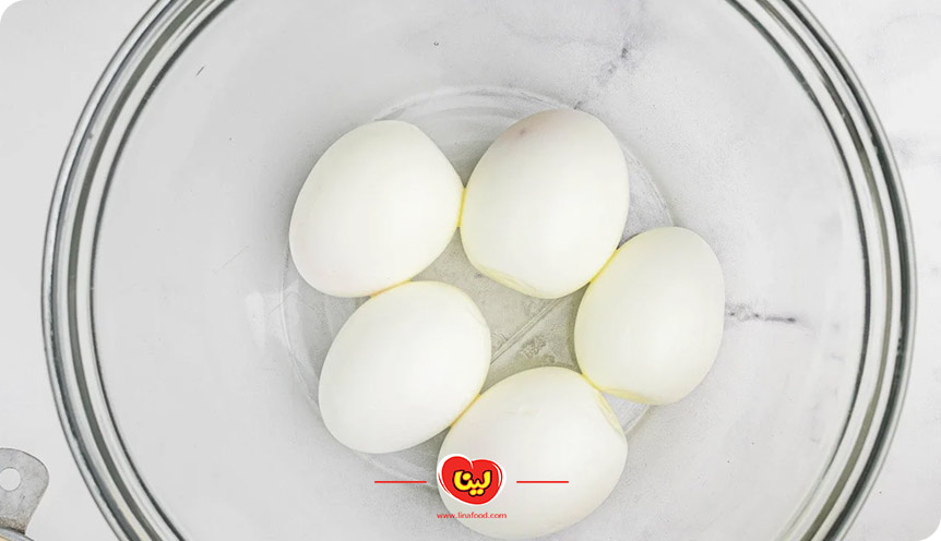 برای شروع کار، تخم مرغها را به همراه مقداری آب در قابلمه مناسبی ریخته و روی حرارت قرار میدهیم. سپس مانند تهیه یرالما یومورتا در قابلمه را گذاشته و صبر میکنیم تا آب به جوش آید و تخم مرغها به خوبی بپزند. بعد از پختن تخم مرغها، روی آنها آب سرد ریخته و به آرامی پوست میکنیم.