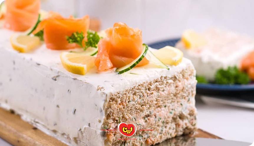 لایه آخر کیک را به مخلوط زرده و کره آغشته کرده و روی آن لایه دیگری از نان تست قرار میدهیم. سپس کل کیک را با ترکیب پنیر و خامه پوشانده و روی آن را با سبزیجات دلخواه و مغز گردو تزیین میکنیم. در نهایت کیک را به مدت ۴ ساعت درون یخچال قرار میدهیم تا خودش را بگیرد.