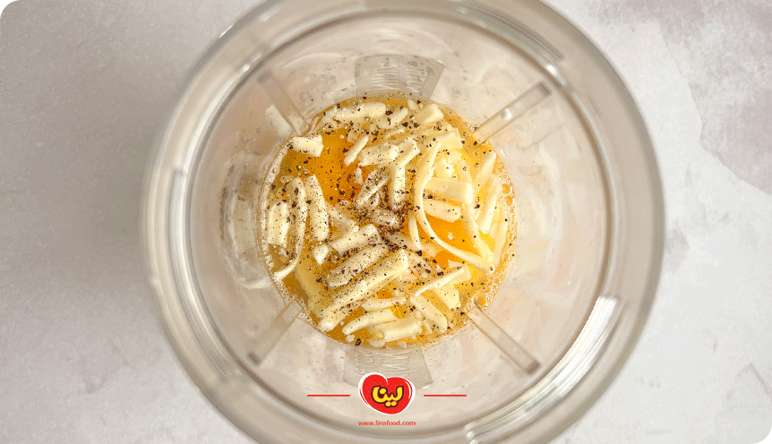 مرحله اول؛ ترکیب تخم مرغ و پنیر