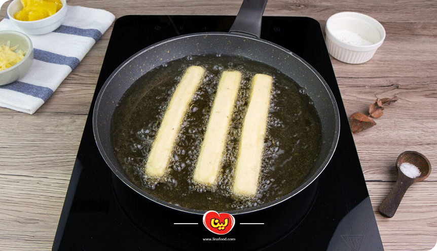 مرحله پنجم؛ سرخ کردن کرانچی پنیری