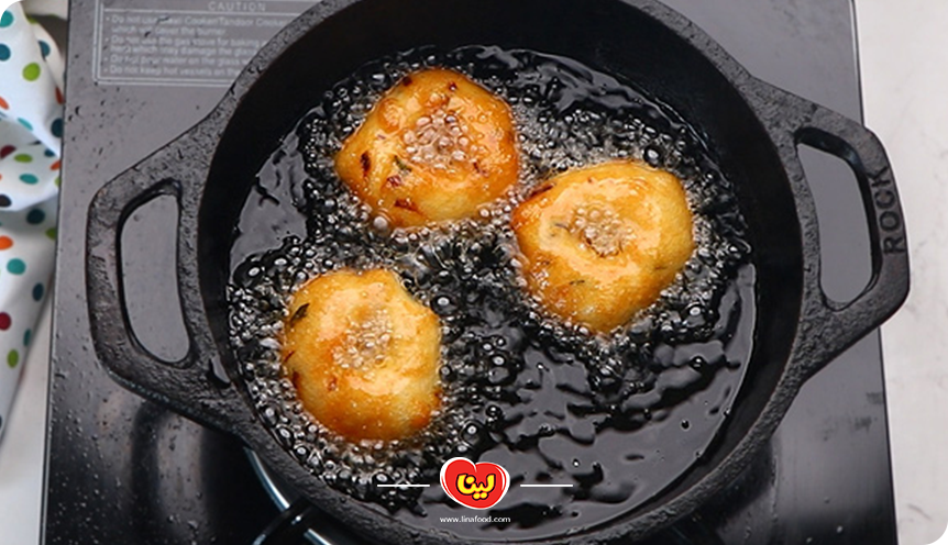 مرحله ششم؛ سرخ کردن دونات مرغ