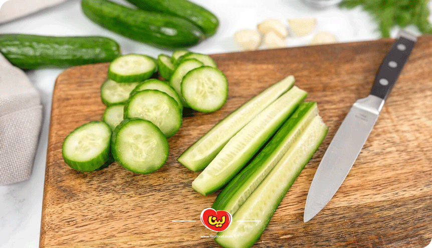 برای شروع کار خیارها را به خوبی شسته و با دقت خشک میکنیم. سپس آنها را به صورت حلقهای برش میزنیم. سیر و فلفل تند را هم به صورت یکسان خرد میکنیم.