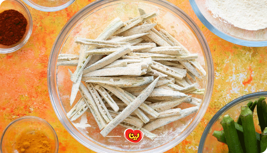 حتماً از روغن داغ برای سرخ کردن استفاده کنید تا بامیهها روغن زیادی جذب نکنند و ترد بمانند.