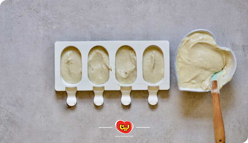 مواد بستنی آماده شده را در قالب مگنوم یا قالب سیلیکونی ریخته و به مدت یک ساعت در فریزر قرار میدهیم تا کمی خودش را بگیرد.