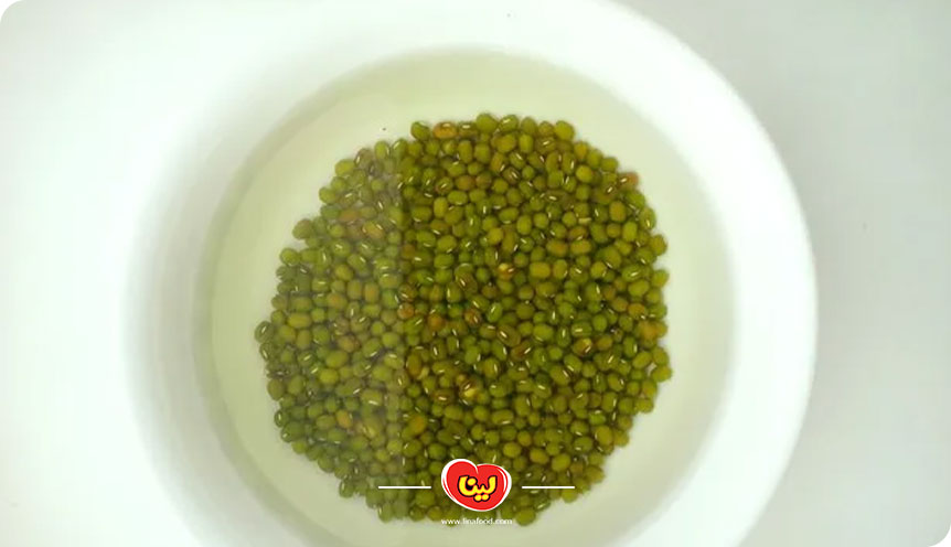 دانههای ماش را داخل یک ظرف بریزید و با آب ولرم بشویید. سپس به مدت۱۲ الی ۲۴ ساعت در آب خیس دهید به طوری که آب کاملا روی سطح دانهها را بپوشاند. در این مرحله دانهها شروع به جذب آب میکنند و پوست آنها کمی نرم میشود. هر چند ساعت یکبار، آب ظرف را عوض کنید تا از ایجاد بوی بد و رشد قارچها جلوگیری شود.