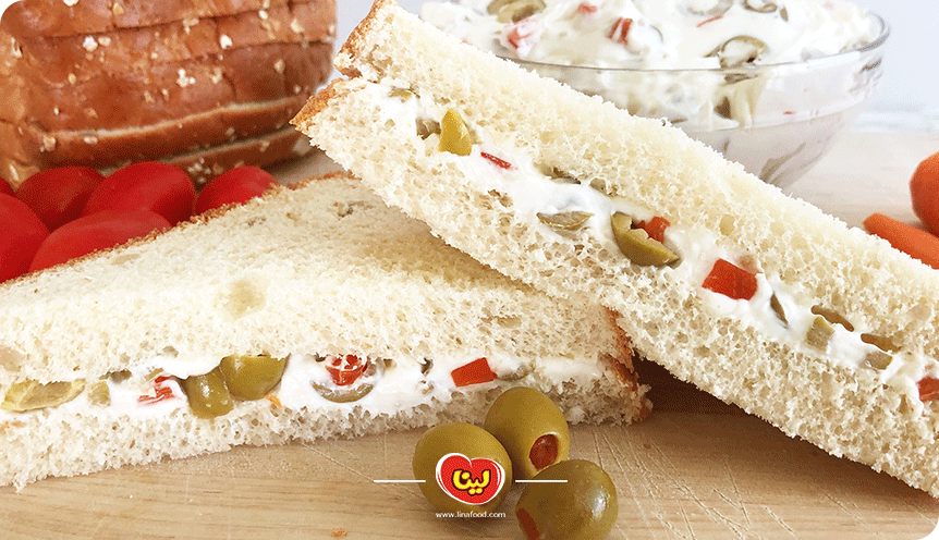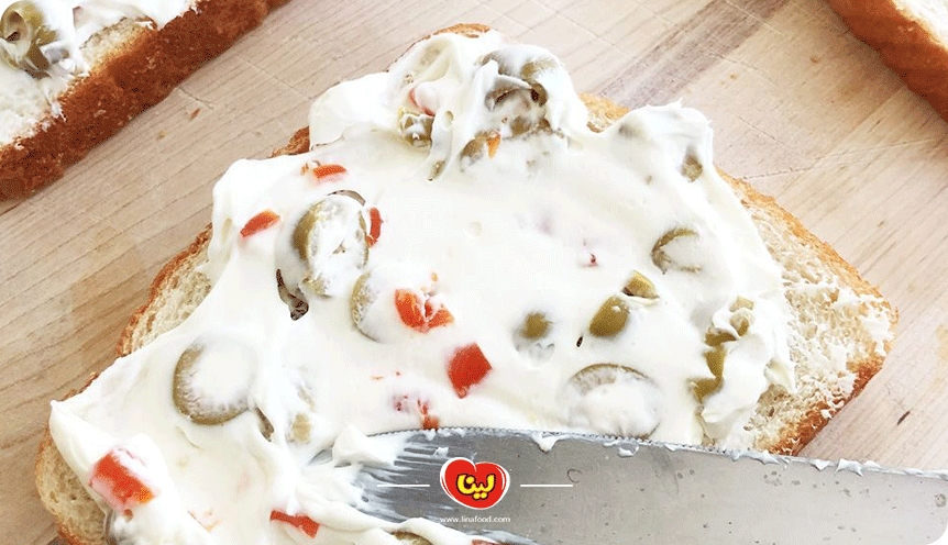 کرم زیتون آمادهشده را مانند تهیه انواع فینگرفود با نان تست با استفاده از یک قاشق روی هر قطعه نان تست قرار میدهیم. سپس نان تست دیگری روی مواد قرار داده و کمی فشار میدهیم تا به هم بچسبند.