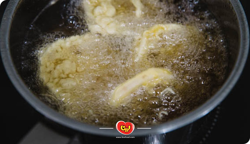 مرحله پنجم؛ سرخ کردن بادمجان پفکی