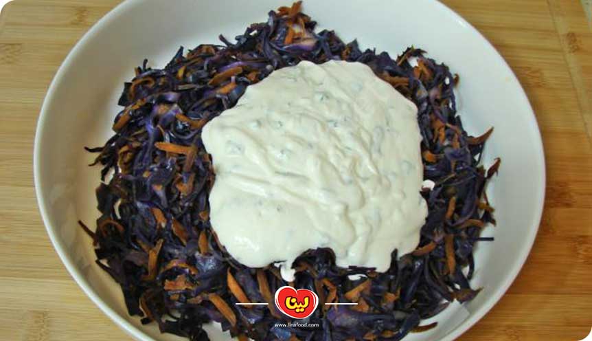 مخلوط ماست را به کلم خرد شده اضافه کرده و مانند تهیه بورانی لبو به آرامی هم میزنیم تا همه مواد به خوبی با هم ترکیب شوند و مخلوط یکدستی حاصل شود.