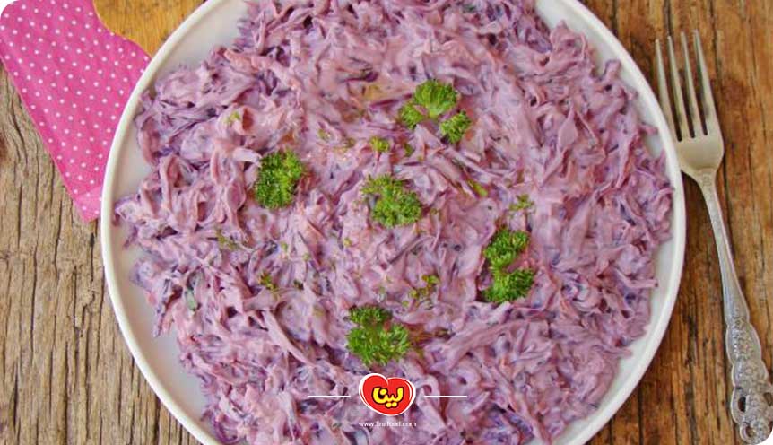 مرحله پنجم؛ تزیین و سرو بورانی کلم قرمز