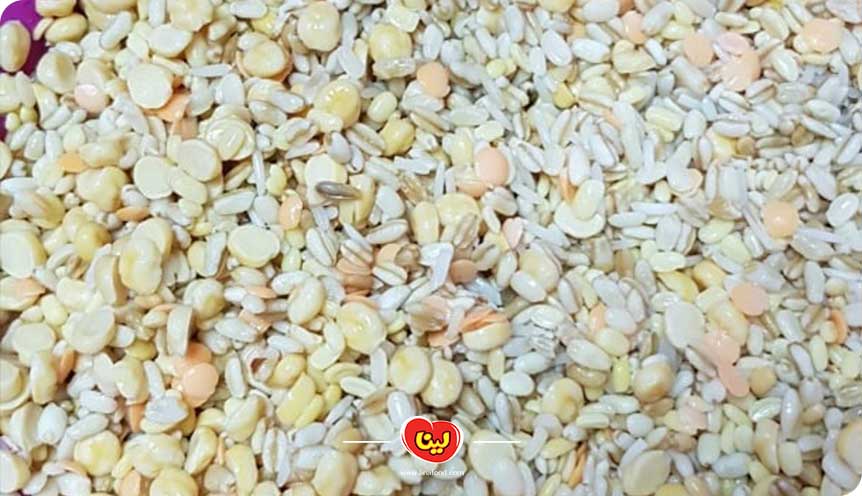 در این مرحله، گندم، جو، لپه و عدس را آبکش شده و به همراه برنج در یک قابلمه مناسب میریزیم. سپس قابلمه را تا نصفه پر از آب کرده و روی حرارت قرار میدهیم. زمان میدهیم تا محتویات قابلمه به خوبی پخته و له شوند.