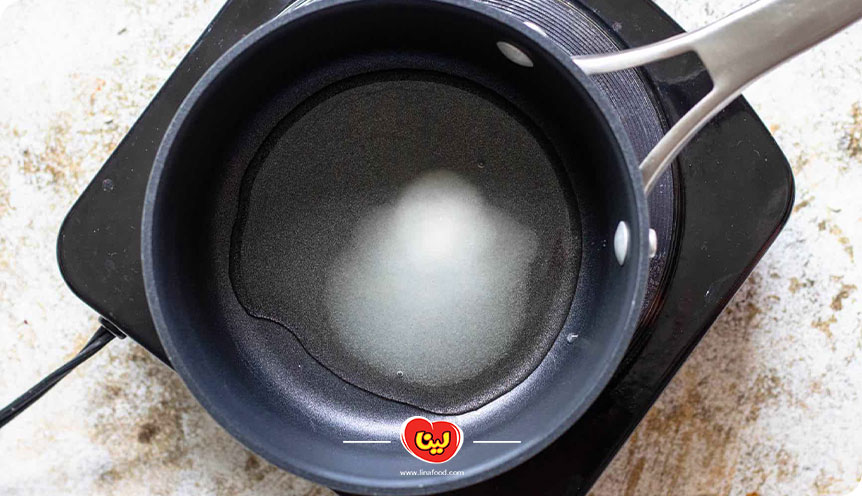 قابلمه را روی حرارت ملایم قرار داده و حدود ۵ دقیقه به آرامی هم میزنیم. حرارت نباید زیاد باشد. زیرا نمیخواهیم مواد بجوشند، بلکه فقط باید ذرات شکر و نمک کاملا در سرکه حل شوند و مایعی شفاف و یکدست حاصل شود.