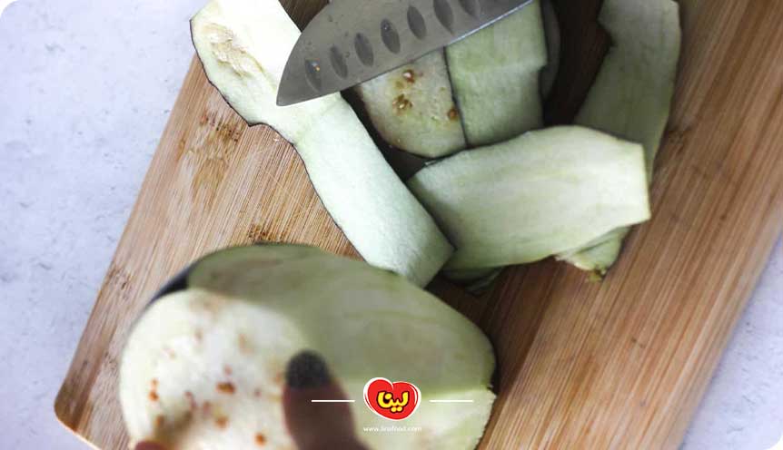 ابتدا بادمجانها را شسته و خشک میکنیم. سپس آنها را مانند تهیه زالوک عربی به خوبی پوست کنده و به صورت ریز رنده میکنیم.