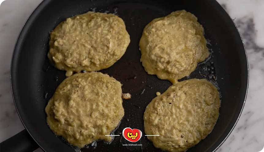 مرحله سوم؛ سرخ کردن پنکیک بادمجان