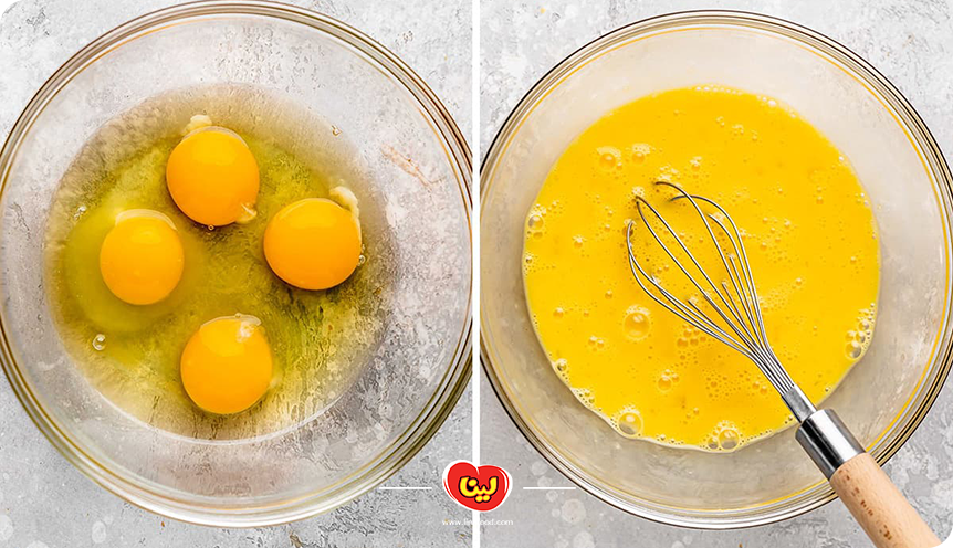 مرحله اول؛ ترکیب تخم مرغ و شکر